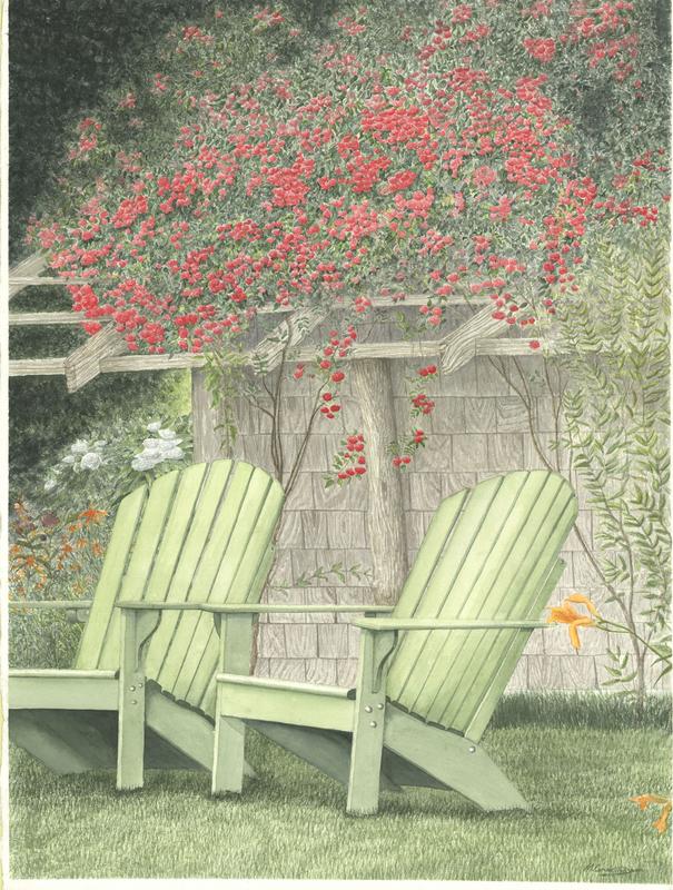 Summer House Garden,Nantucket. 2012 Medium Watercolor . Original $5,000 Sold... Prints Avaliable, $300.00 each. Set of 450. Size 20inx30in
