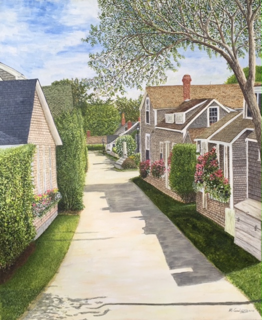 Elbow Lane Sconset .Original Oil 10.5 in x 14.5 in $5,000 Showing in Claudettes Sconset