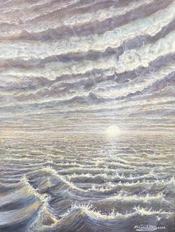 Waves and roses and face in Sky,Oil 9 x 12 in Original $1,200